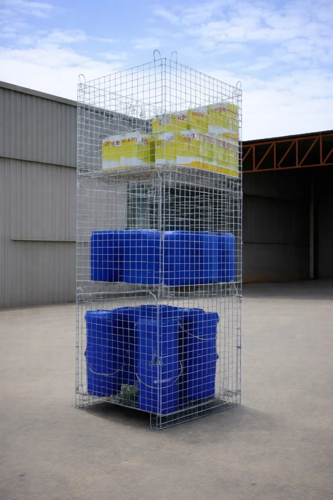 Fabricado em arame de alta resistência, com estrutura reforçada e excelente acabamento, suporta até 300 kg por unidade, garantindo segurança, estabilidade e confiabilidade no armazenamento de cargas diversas. Sua composição metálica assegura alta durabilidade, resistência ao desgaste e excelente desempenho mesmo em ambientes de uso intenso.